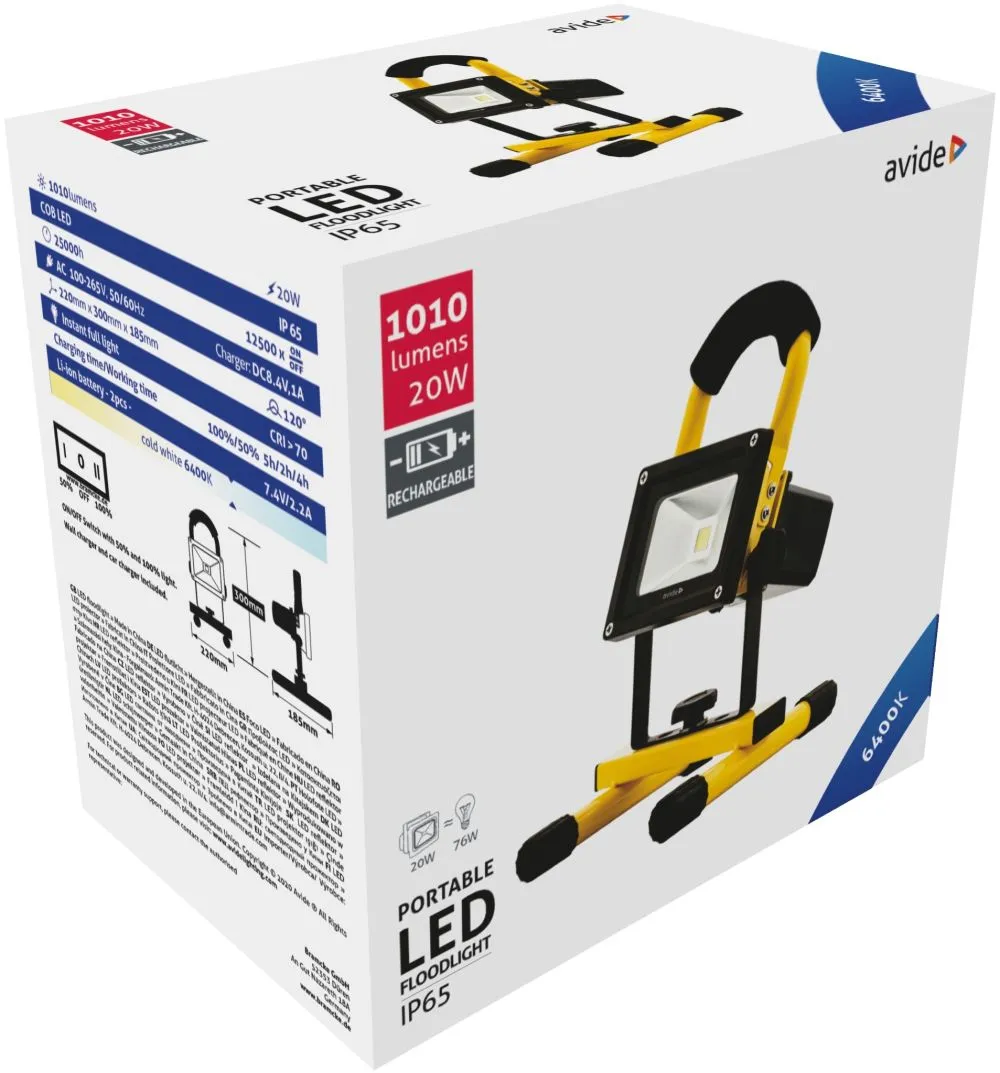 Avide LED Reflektor Akkumulátoros 20W CW 6400K