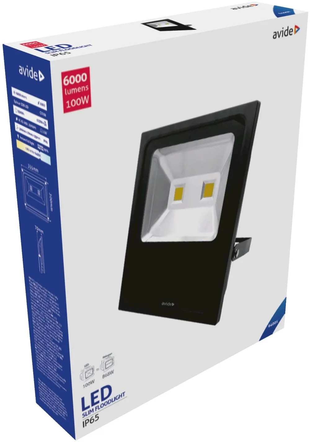 Avide LED Reflektor Slim 100W CW 6400K