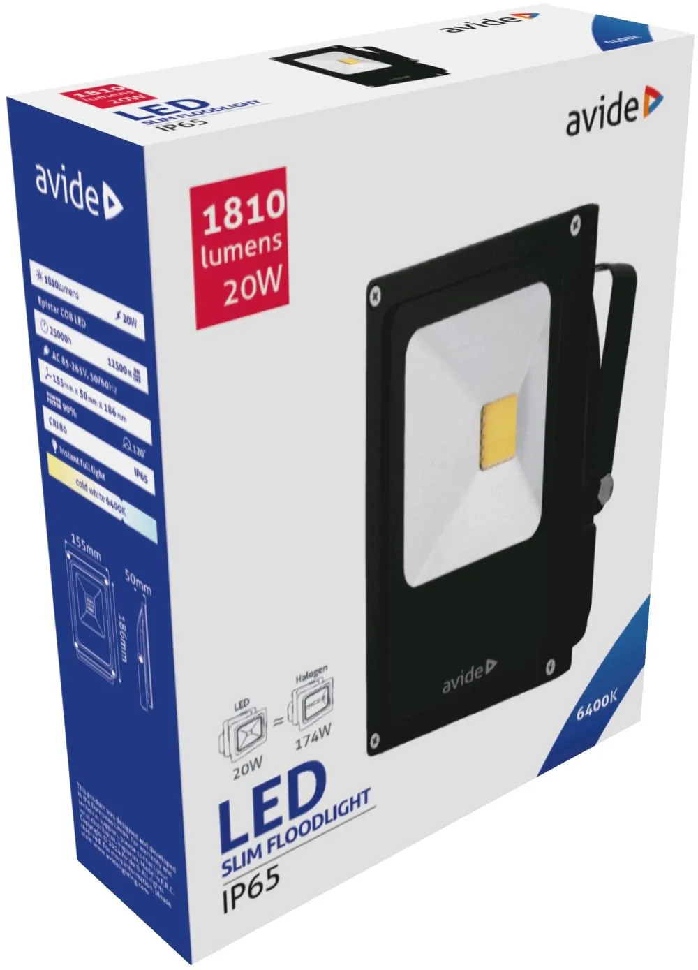 Avide LED Reflektor Slim 20W CW 6400K