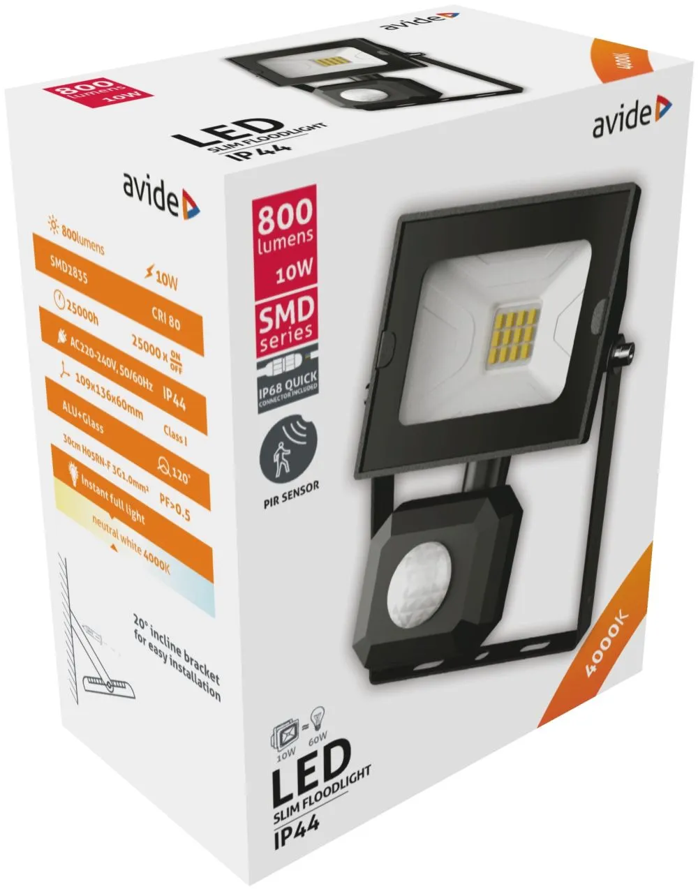 Avide LED Reflektor Slim SMD 10W NW 4000K Mozg.érz. PIR Gyorscsat.