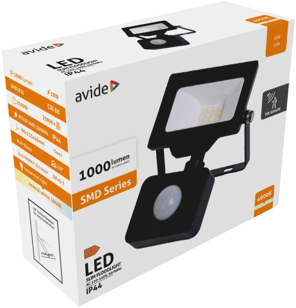 Avide LED Reflektor Slim SMD 10W NW 4000K Mozgásérzékelős PIR
