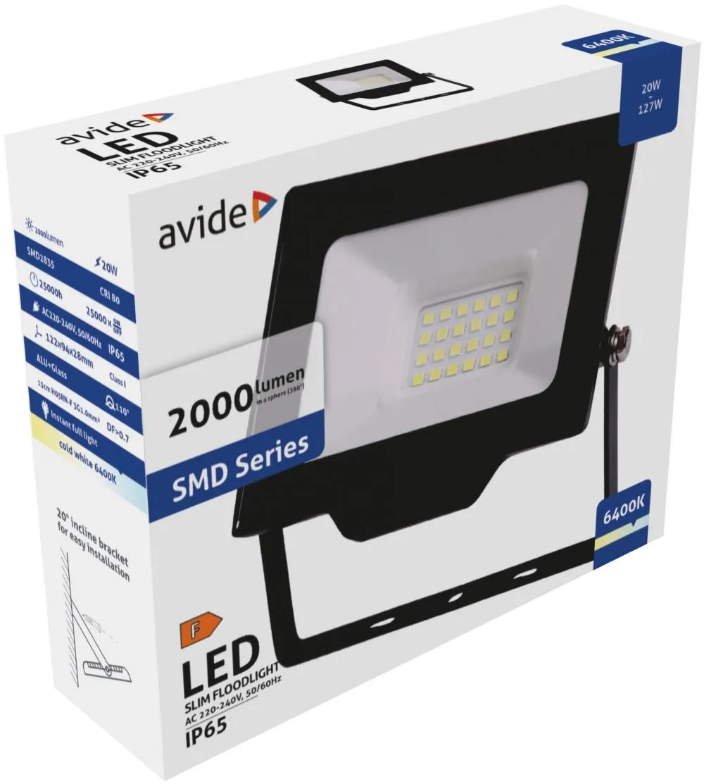 Avide LED Reflektor Slim SMD 20W CW 6400K
