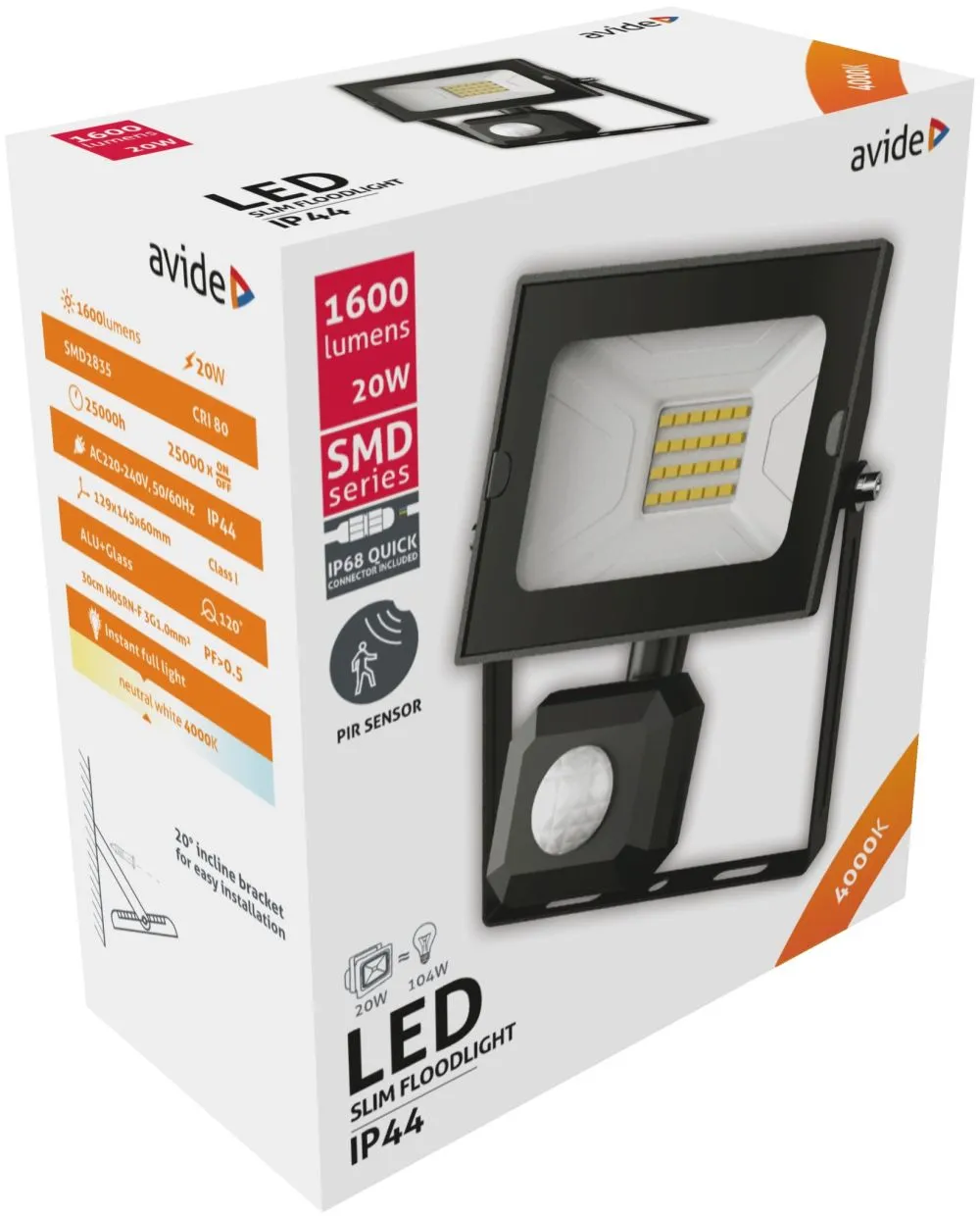 Avide LED Reflektor Slim SMD 20W NW 4000K Mozg.érz. PIR Gyorscsat.