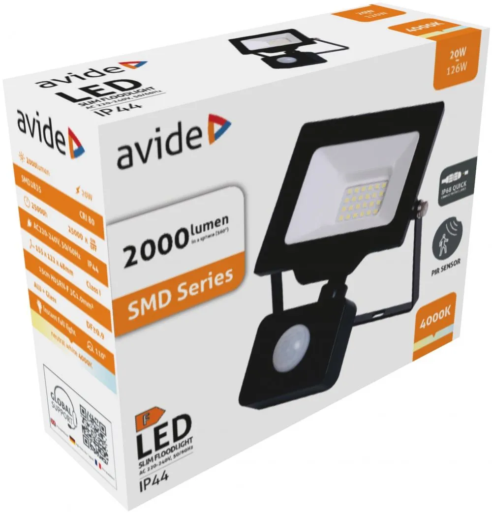 Avide LED Reflektor Slim SMD 20W NW 4000K Mozg.érz. PIR Gyorscsat.