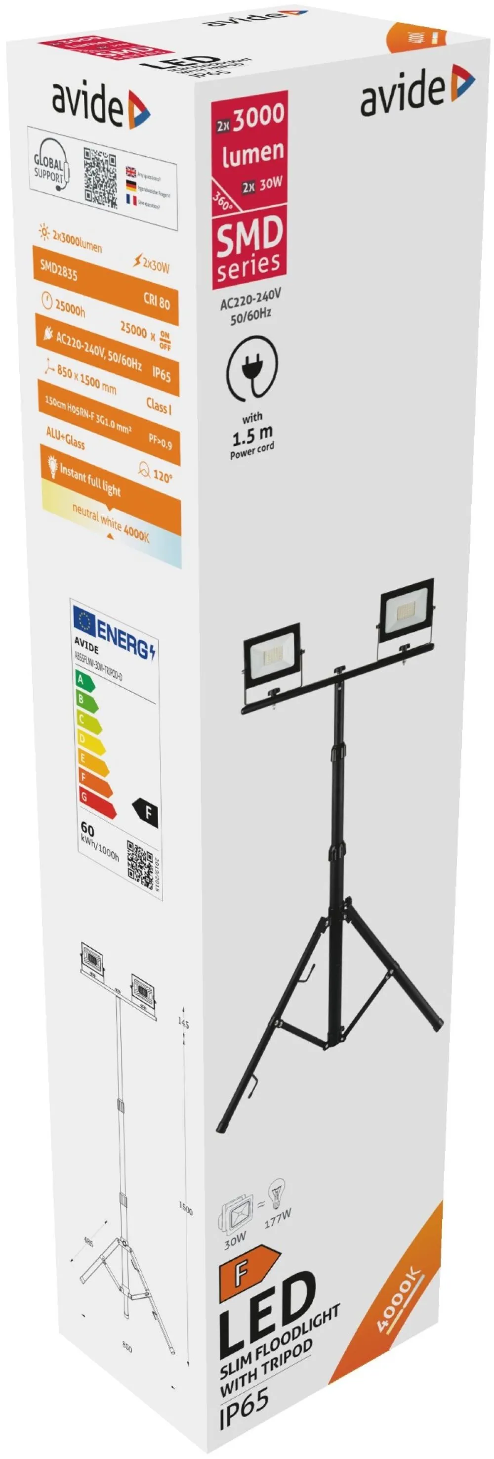 Avide LED Reflektor Slim SMD 2x30W NW 4000K 2 fej Tripoddal