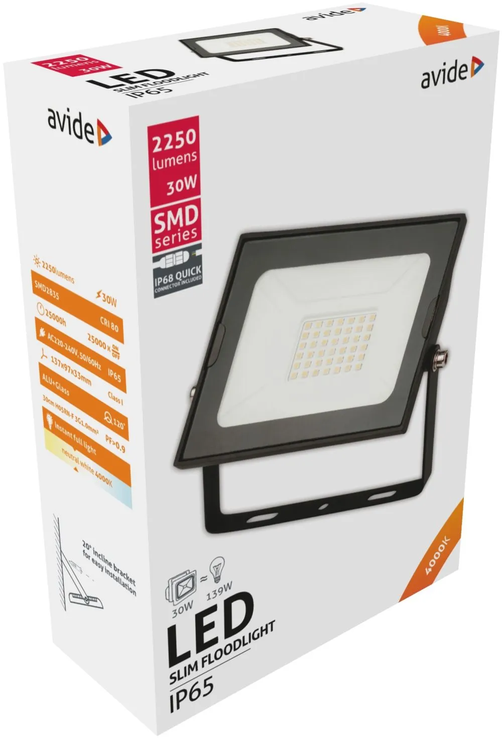 Avide LED Reflektor Slim SMD 30W NW 4000K Gyorscsat.