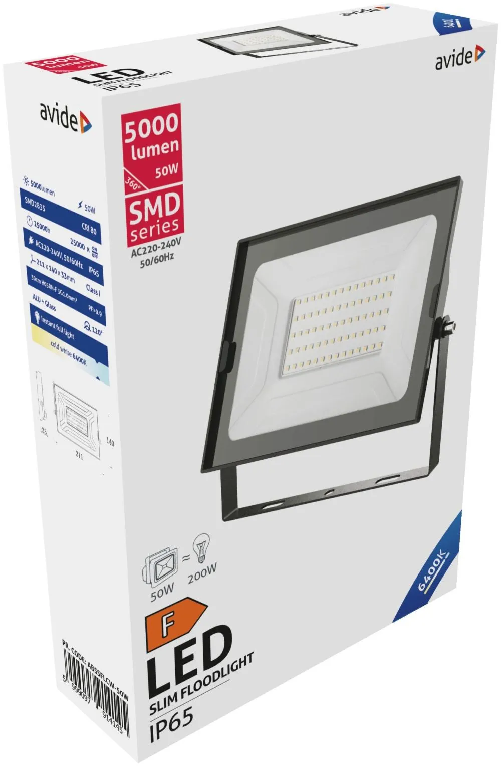 Avide LED Reflektor Slim SMD 50W CW 6400K