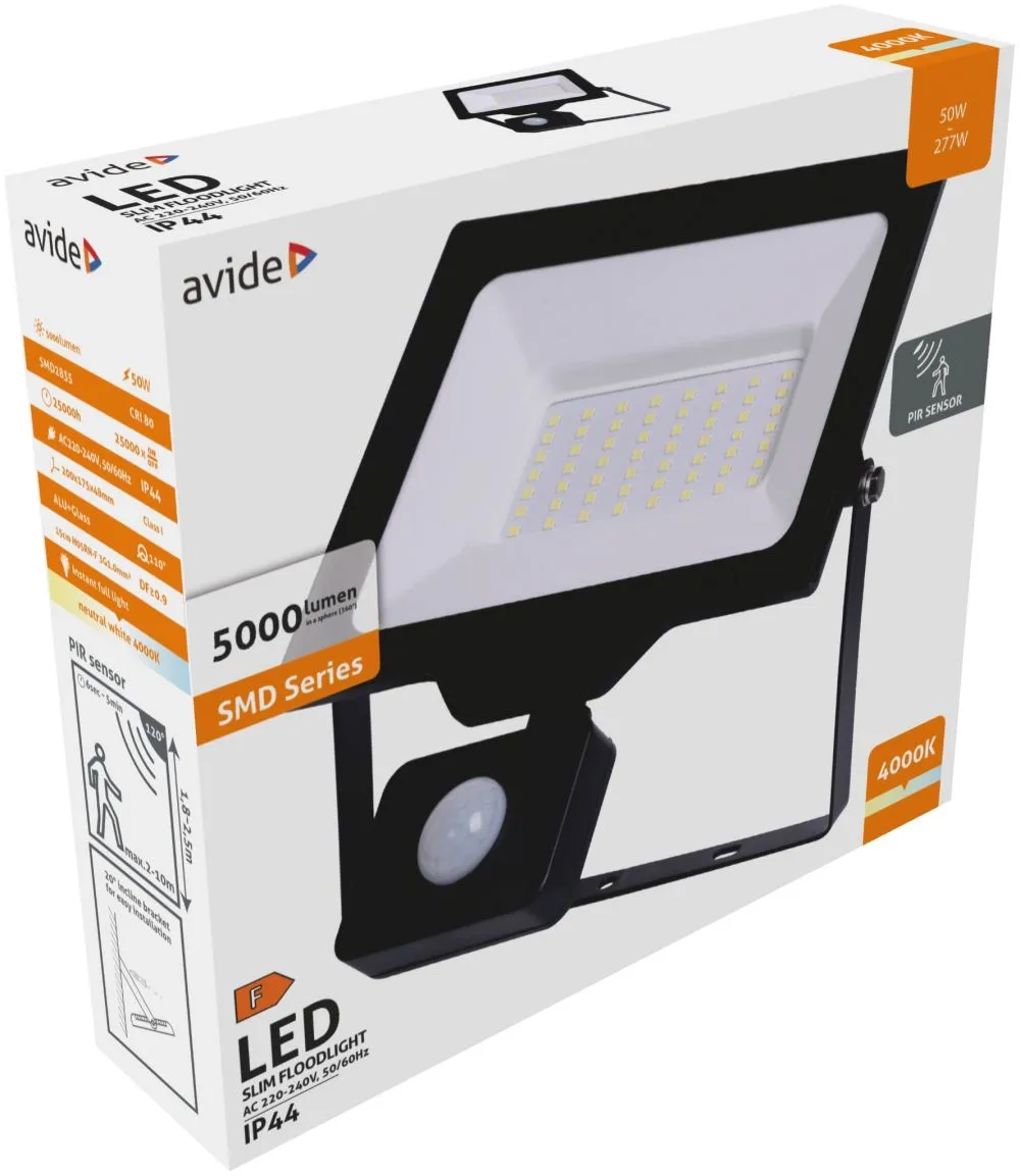 Avide LED Reflektor Slim SMD 50W NW 4000K Mozgásérzékelős PIR