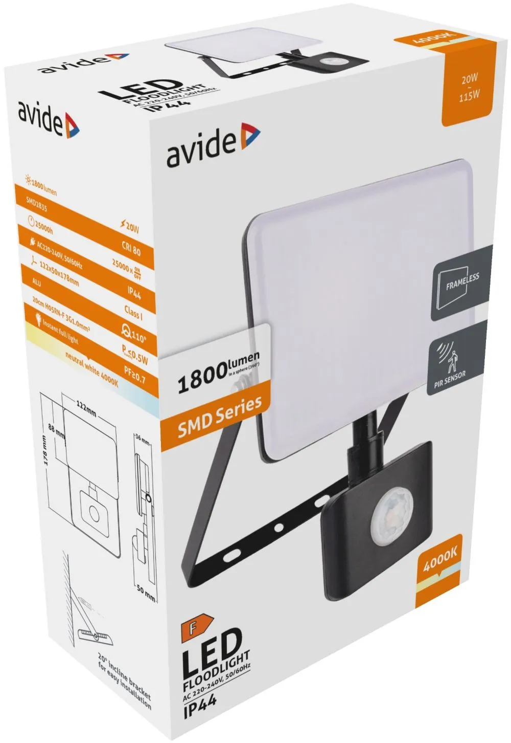 Avide LED Reflektor Slim SMD Keret nélküli 20W NW 4000K Mozgásérzékelős PIR