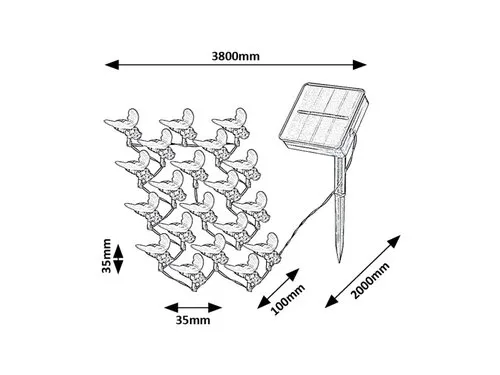 A modern stílusú Bobus kültéri napelemes dekorlámpa segítségével varázslatos hangulatot teremthetünk a teraszon vagy a kertben. A teljes egészében műanyagból készült, fekete modellt a napelemet tartalmazó egységen kívül 20 sorba kötött, méhecske formájú, fehér búrával ellátott lámpa alkotja. A Bobus beépített LED fényforrásokkal rendelkezik, amelyek teljesítménye 0,06 W, fényerejük búrával 3 lumen, búra nélkül 8 lumen, színhőmérsékletük pedig 2700 K. A meleg fehér fénnyel világító fényforrások élettartama 10 000 óra. Folyamatos világítás esetén a dekorlámpa üzemideje 6-8 óra. Az akkumulátor feszültsége 1,2 V, kapacitása 600 mAh. Az intelligens mozgásérzékelő a lámpa fényerejét a körülményeknek megfelelően változtatja. A kapcsolóval ellátott lámpa teljes hossza 3800 mm, az egyes lámpafejek átmérője 35 mm. A Bobus kültéri lámpa IP44-es védettsége garantálja, hogy legfeljebb 1 mm átmérőjű tárgyak behatolása ellen, valamint bármilyen irányból fröccsenő víz ellen védett.