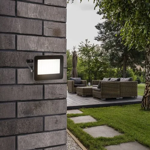 A Flood kültéri reflektor lámpa kiválóan alkalmas a ház körüli kert megvilágítására. A fekete színű, fém lámpatestet átlátszó műanyag búra egészíti ki. A reflektor beépített LED fényforrással rendelkezik, a fényforrás teljesítménye 30 W, fényereje 3300 lumen, színhőmérséklete 4000 K. A természetes fehér fénnyel világító fényforrás élettartama 20 000 óra. A lámpa kialakításának köszönhetően a Flood fényét rugalmasan irányíthatjuk, így tetszés szerint megvilágíthatunk vele egy-egy növényt vagy a kert egyes kiemelt részeit. A bevilágítási szög 110 fok. A technikai lámpa szélessége 176 mm, magassága 136 mm. A Flood IP65-ös védettséggel rendelkezik, azaz teljesen zárt és védett a szilárd anyagok és szennyeződések ellen, valamint kisnyomású vízsugár ellen védett. A lámpára 5 év garanciát biztosítunk.