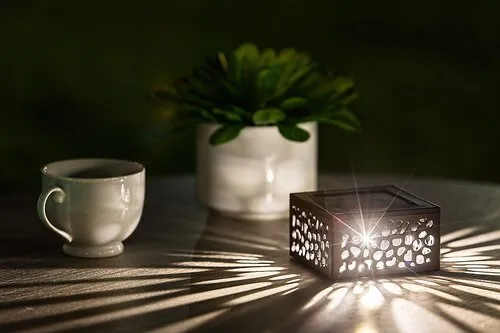 A modern stílusú, szögletes Medulin kültéri napelemes asztali lámpa remek választás lehet a teraszon elköltött kellemes vacsorákhoz és nyáresti beszélgetésekhez. A műanyagból készült, körös-körül szabálytalan mintákkal áttört fekete lámpatestet tejszínű üvegbúra egészíti ki. A Medulin beépített LED fényforrással rendelkezik, amelynek teljesítménye 0,5 W, fényereje búrával 8 lumen, búra nélkül 10 lumen, színhőmérséklete pedig 3000 K. A meleg fehér fénnyel világító fényforrás élettartama 12 500 óra. Az asztali lámpa szélessége 85 mm, magassága 50 mm. A Medulin napelemes lámpa IP44-es védettsége garantálja, hogy legfeljebb 1 mm átmérőjű tárgyak behatolása ellen, valamint bármilyen irányból fröccsenő víz ellen védett. Az AA típusú napelem feszültsége 1,2 V, kapacitása 600 mAh.